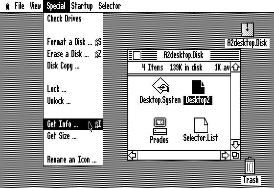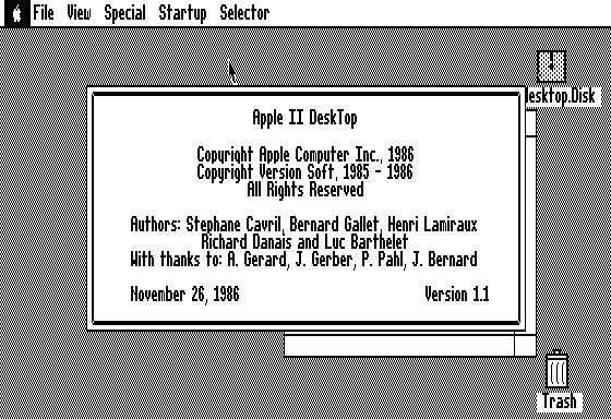 The Apple II Desktop is a 1985/6 Macintosh Finder-like interface for the Apple IIe, IIc and IIgs.