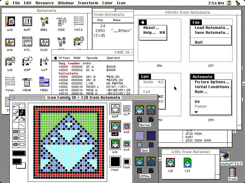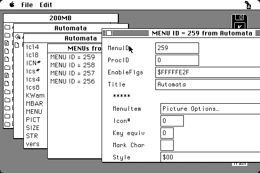 - ResEdit 1.0.1 (1986), 1.2 (1989), 2.1.3 plus CODE editor (1994)