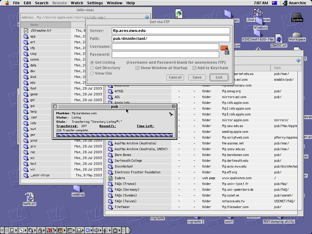Anarchie 3.7 (1999) | NCSA Mosaic (1994) | Netscape 1.1 (1995) |
