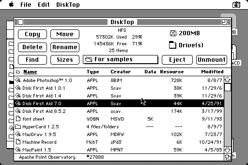 - Disk First Aid 1.0.1 (1986), 1.4 (1988), 7.0 (1991), 7.2.4 (1997), 8.5 (1999)