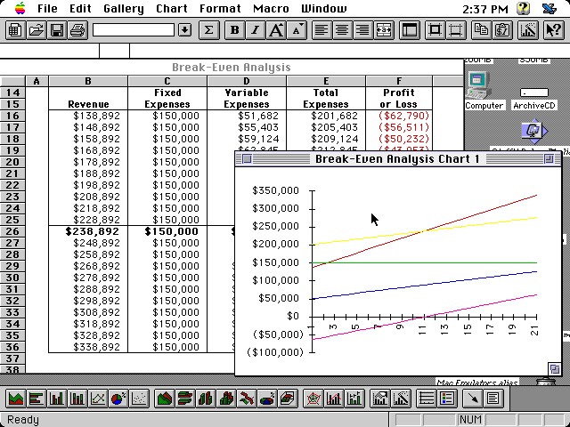 - Microsoft Excel 1 (1985), 2.2 (1989), 4 (1992)