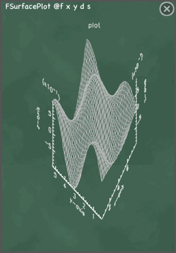 The Plot area shows the current graphic. Double clicking the plot will cause it to pop out as a child window, and the graphic can then be copied, scaled, and manipulated in 3D where appropriate. Rotation and tilting in 3D is via swipe and rotate gestures, or by clicking and dragging the mouse. Zooming in and out is via pinch gestures or shift-dragging with the mouse. Double clicking the horizontal divider will maximise the output panes.