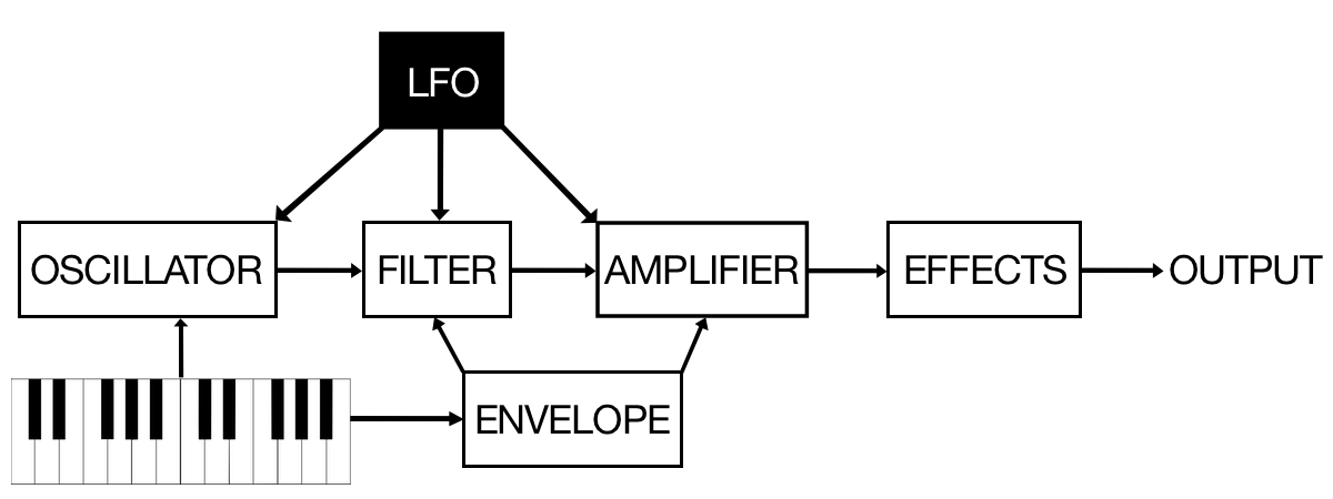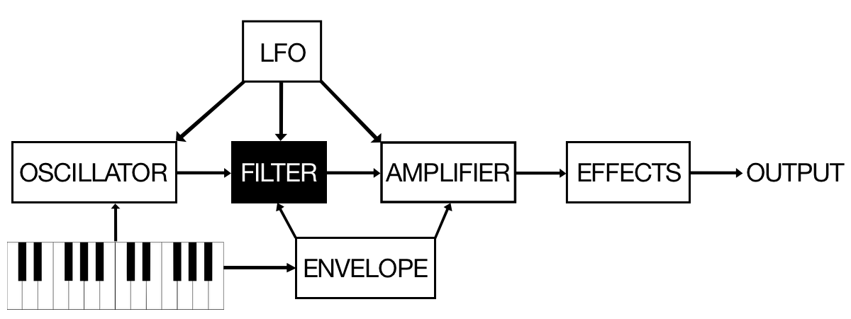 To do this requires an understanding of the physics of sound, in particular the nature of the sound waves produced by oscillators, since these provide the raw sonic material. Then there is the action of filters that selectively suppress or enhance features of the sound produced by the oscillators, envelopes that shape the amplitude of the sound and other signals, and low frequency oscillators that produce modulation - i.e. time varying features in the output sound.