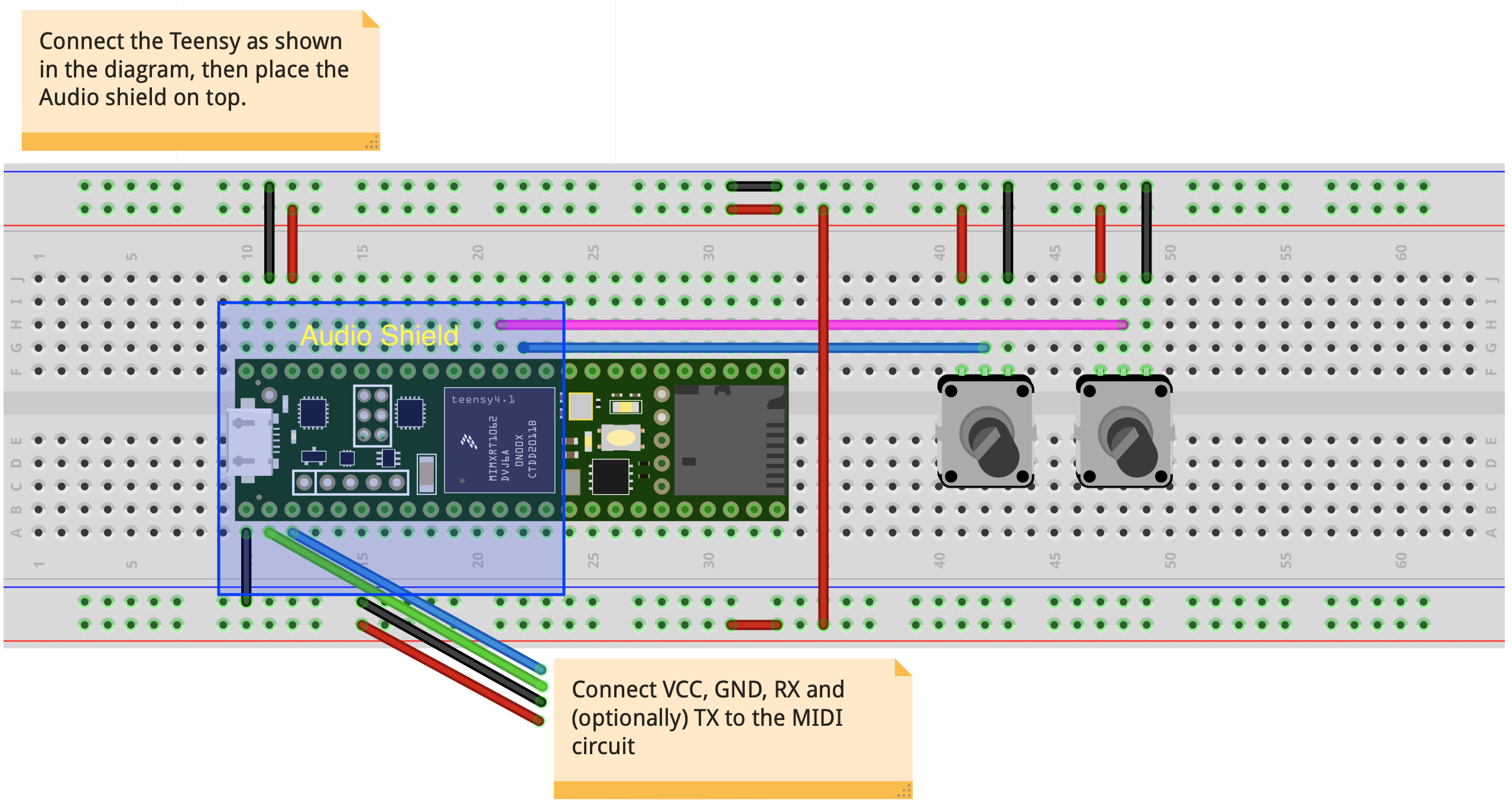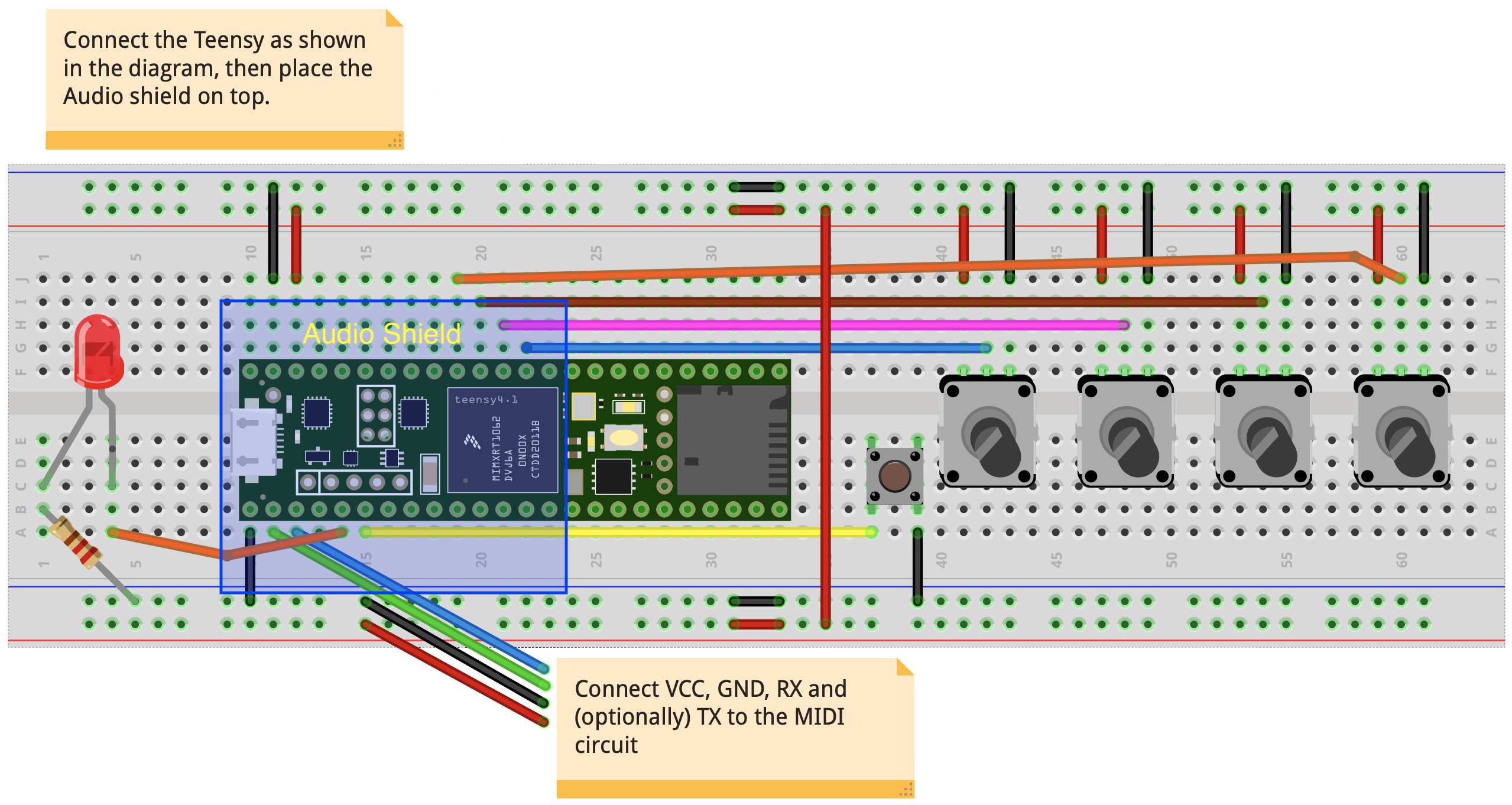 An easy to build and use, Teensy-based polyphonic synthesis kit, Mentor, is also available and is described in detail in chapter 9. If you wish to build the kit, it can also be used to illustrate each the important points raised in the earlier chapters.